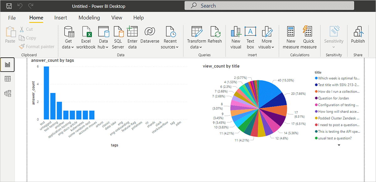You can now build reports and visualize your Stack Internal Enterprise data. Read this Microsoft Power BI quickstart guide for more information on creating reports and charts.