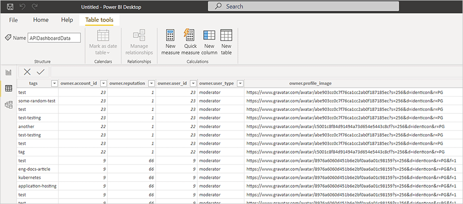 This example shows just one of many possible ways to build a Power BI Dashboard using the Stack Overflow API. This script is flexible, and you can modify it to connect to other visualization tools.