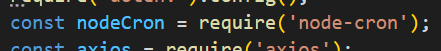 The const nodeCron command loads the node-cron library, which is required to schedule an automation job.