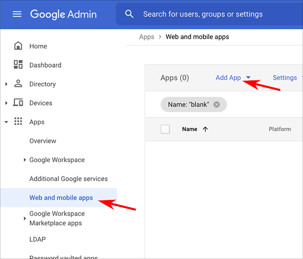 Click Apps, then Web and mobile apps.