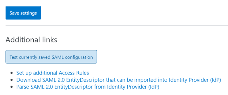 Test and save your SAML configuration
