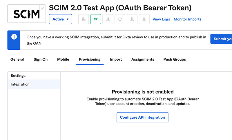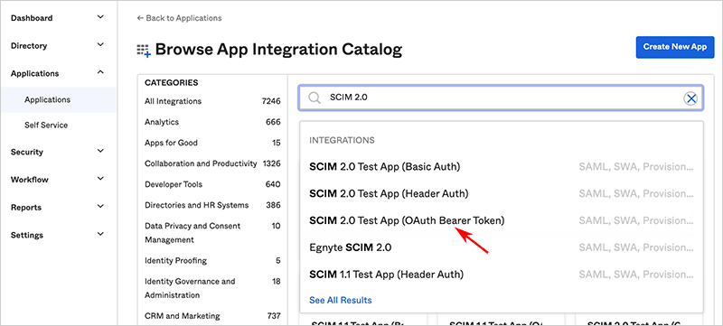Search for SCIM 2.0 Test App (OAuth Bearer Token).