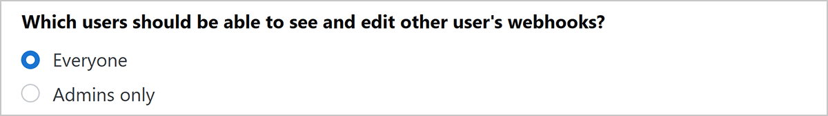 Specify if all users—or just admins—should be able to view and edit all Slack webhooks (notifications) on your Stack Internal Enterprise instance. If set to Admins only, users and moderators will be able to edit only their own webhooks.