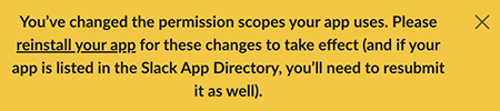 Message: "You’ve changed the permission scopes your app uses."