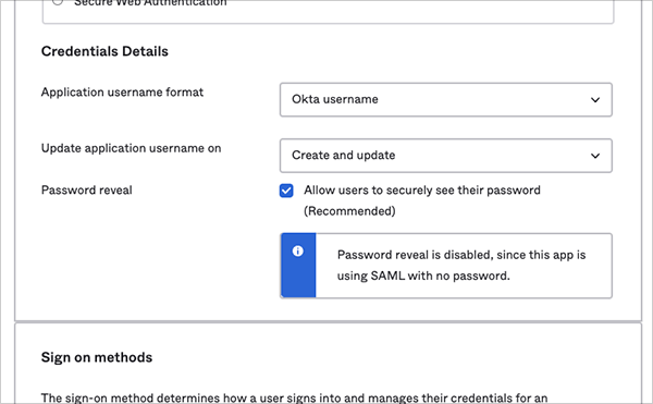 Okta Sign-On Options tab
