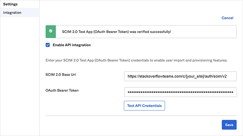 - SCIM 2.0 Base Url https://stackoverflowteams.com/c/[your_site]/auth/scim/v2.