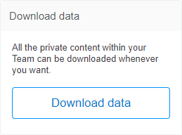 This can be done by any team admin via the Settings section within the team. While viewing the Settings, click on 'Account information' under the 'Billing' section. You'll then be presented with your account information. On this page, you'll notice a 'Download data' option off to the right side.