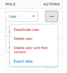 Team Admins can export data for an individual user by going to Admin settings -> Users and permissions. Once there, click on the Actions menu next to a User and select the Export data, to generate the export.