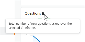 - Questions: Total number of new questions asked over the selected timeframe, both from your Stack Overflow instance and any integrations.