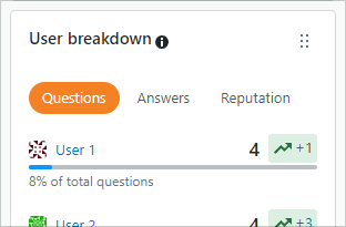 In this example, the user breakdown list offers Questions, Answers, and Reputation views.