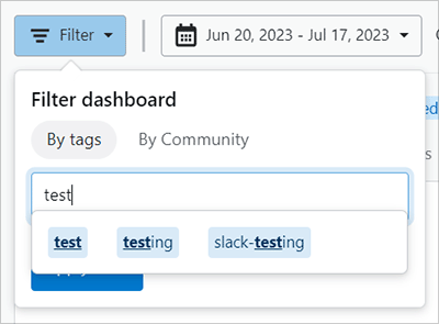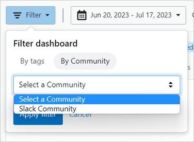 To filter by Community, click the Community name in the Select a Community pull-down menu. After you've entered the tag(s) or Community for your filter, click Apply filter.