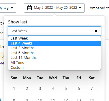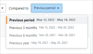 To compare stats against a previous date range, click the Compared to button and choose from the following options: