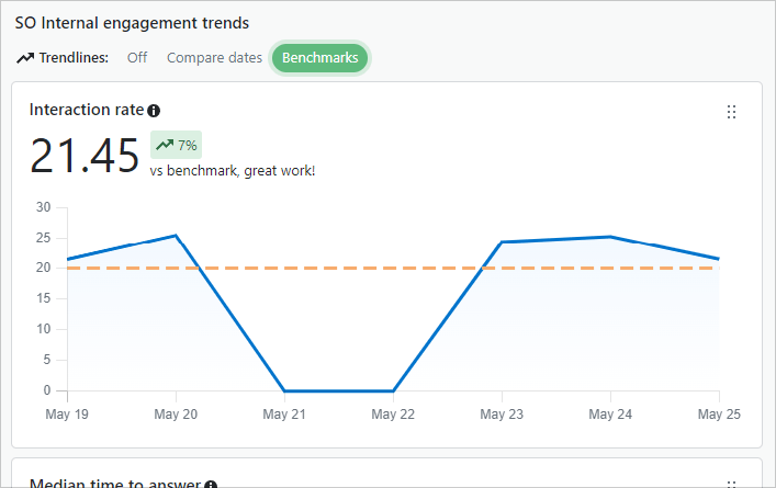 - Median time to answer: The median time it takes for a new question to be answered.