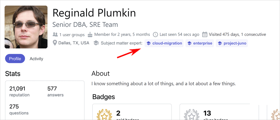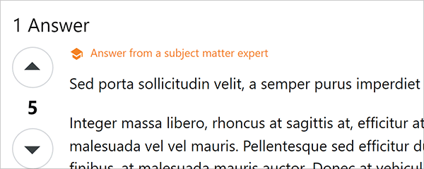 When an SME answers a question, Stack Overflow Internal adds "Answer from a subject matter expert" above their answer.