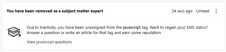 If you lose your SME status due to inactivity, the site will alert you on your Home page.